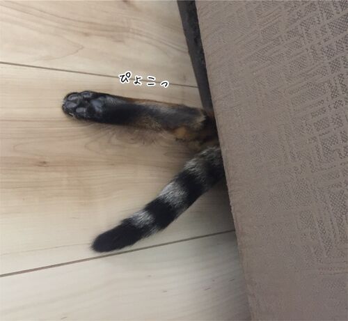 ソファーの下からはみでるナナの足(…としっぽ) 結局どうなってるのか見えなかった…